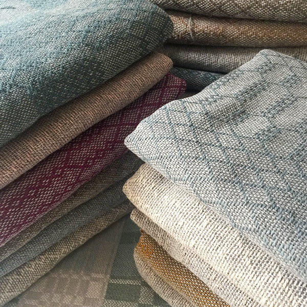 端の始末をするだけでタオルやマフラーとして使える布や、バッグやポーチに仕立てられる布など、毎日の暮らしの中で使うことができます。