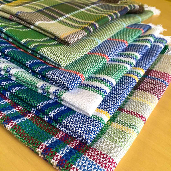 スウェーデンの伝統的な織りのパターンを基に、コットン、リネン、ウールなどの糸を使用し、毎月さまざまな布を織ります。