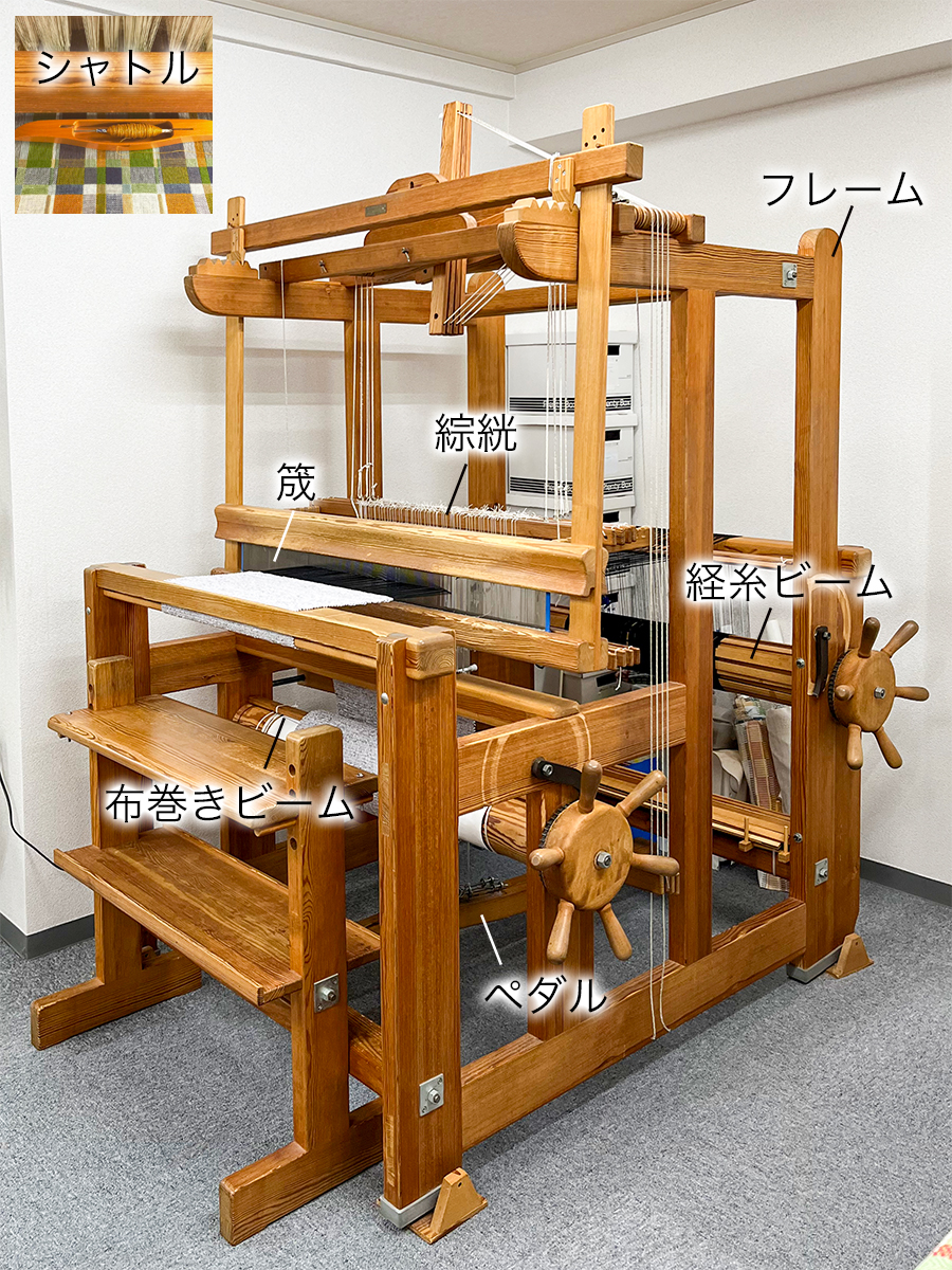 スウェーデン製の大型織機を例に、織機の仕組みをご紹介します。